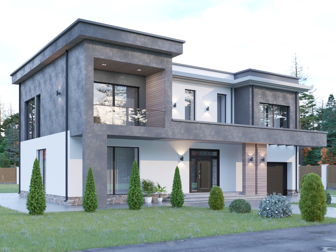 Также на этом этапе наш архитектор выполняет трехмерную визуализацию дома, позволяющую заказчику иметь наиболее полное представление о внешнем виде будущего дома и облегчающую подбор его цветового решения.