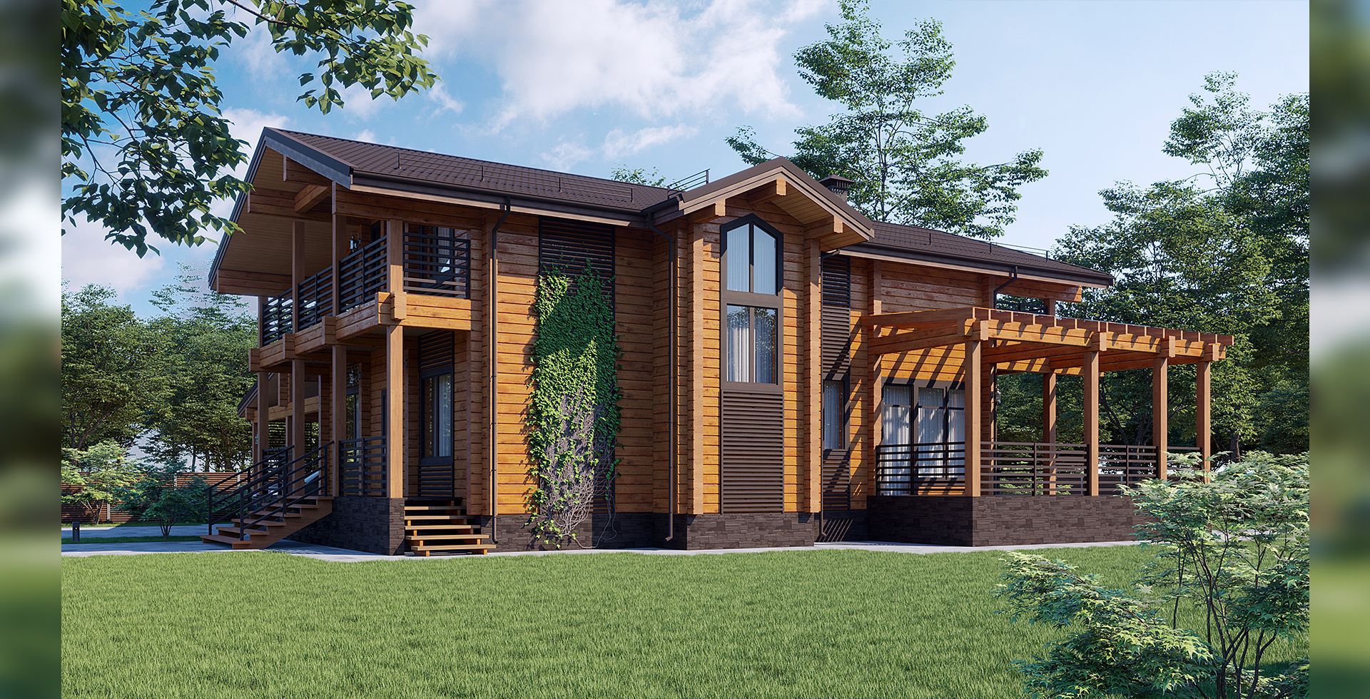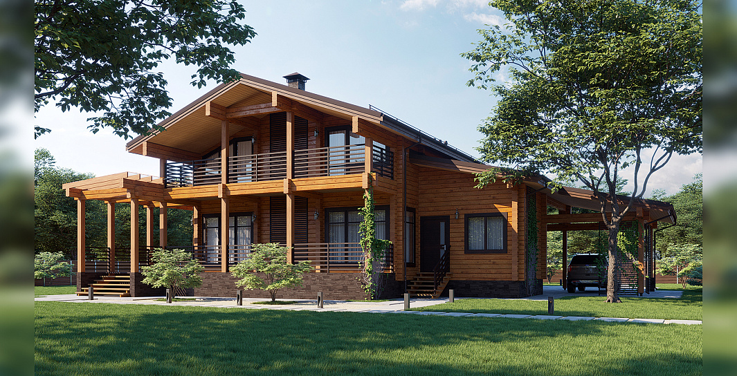 Двухэтажный дом из клееного бруса - уютное пространство для большой семьи.