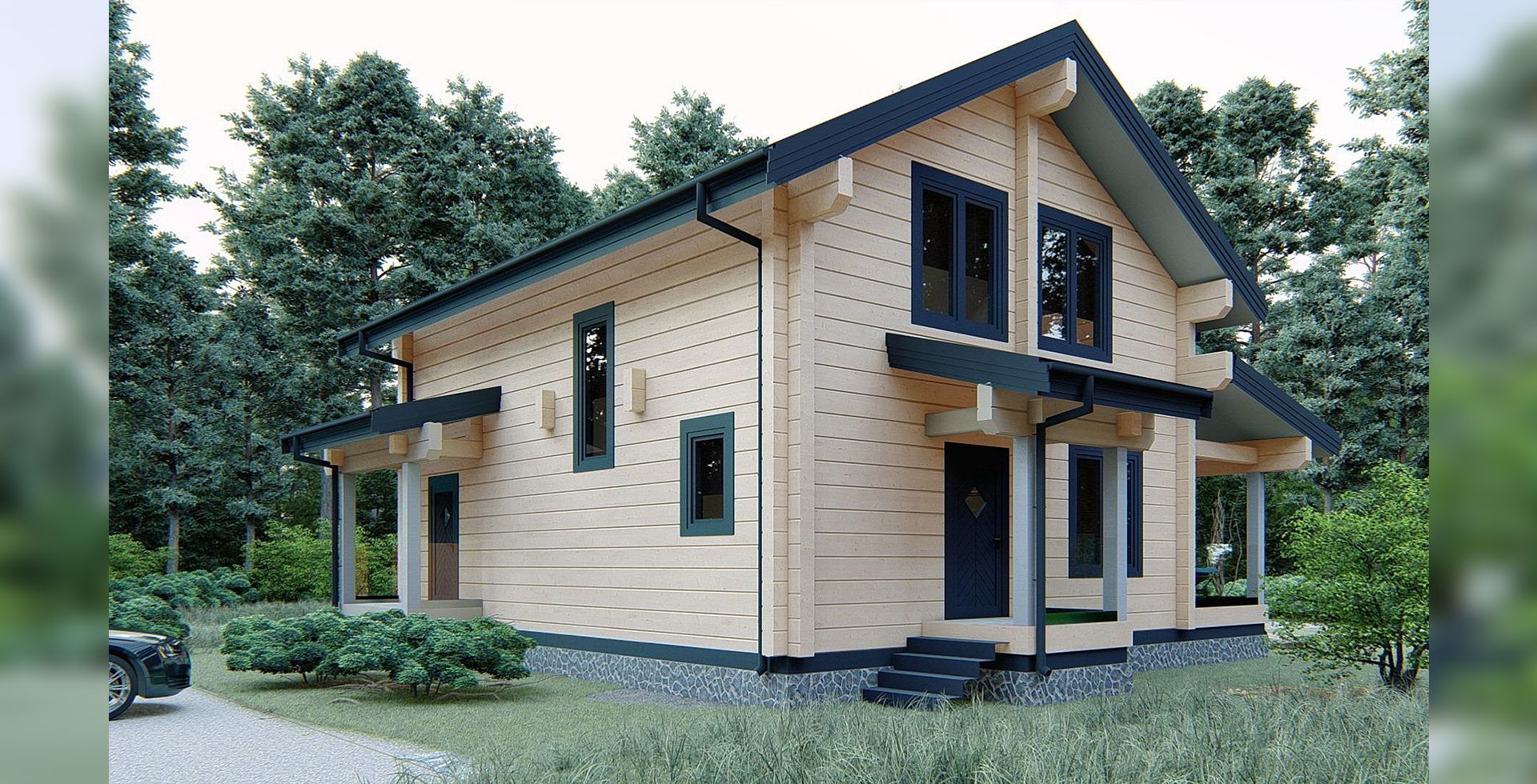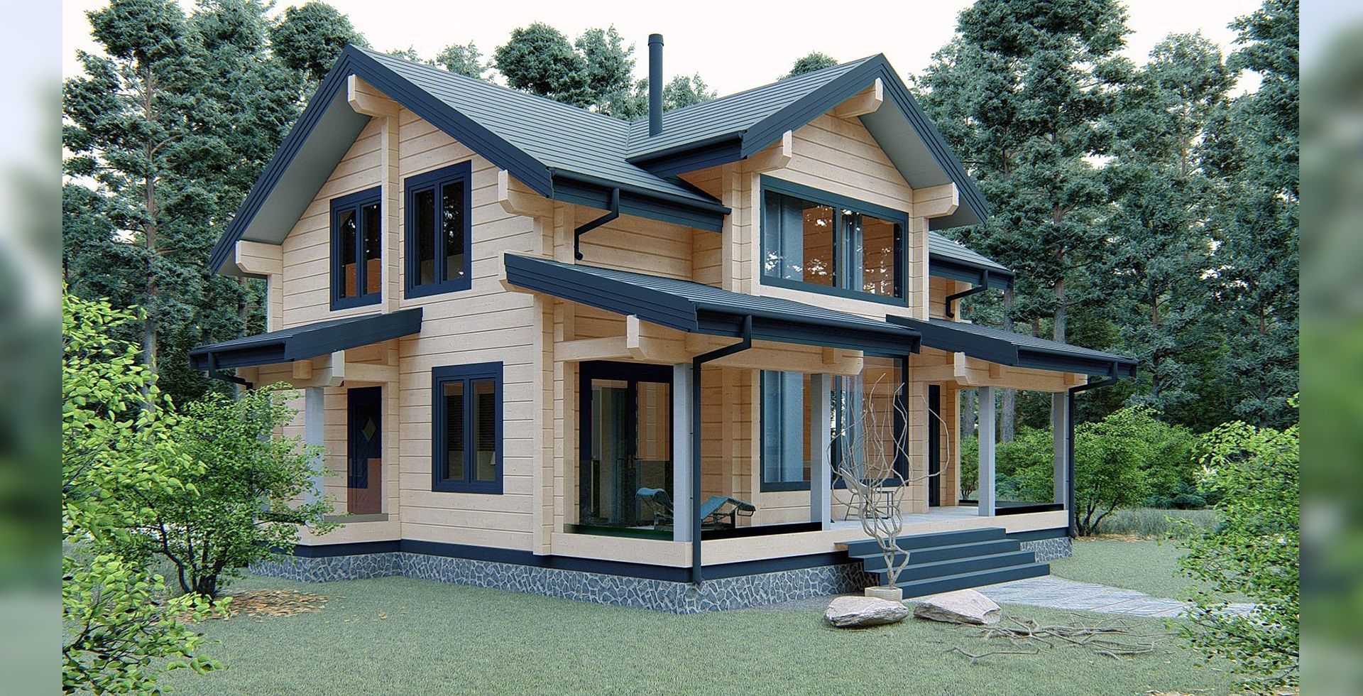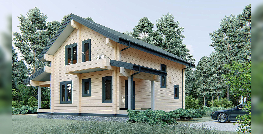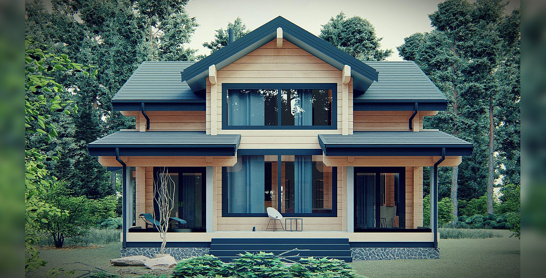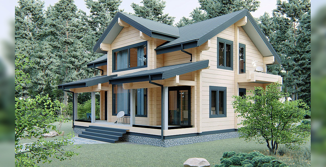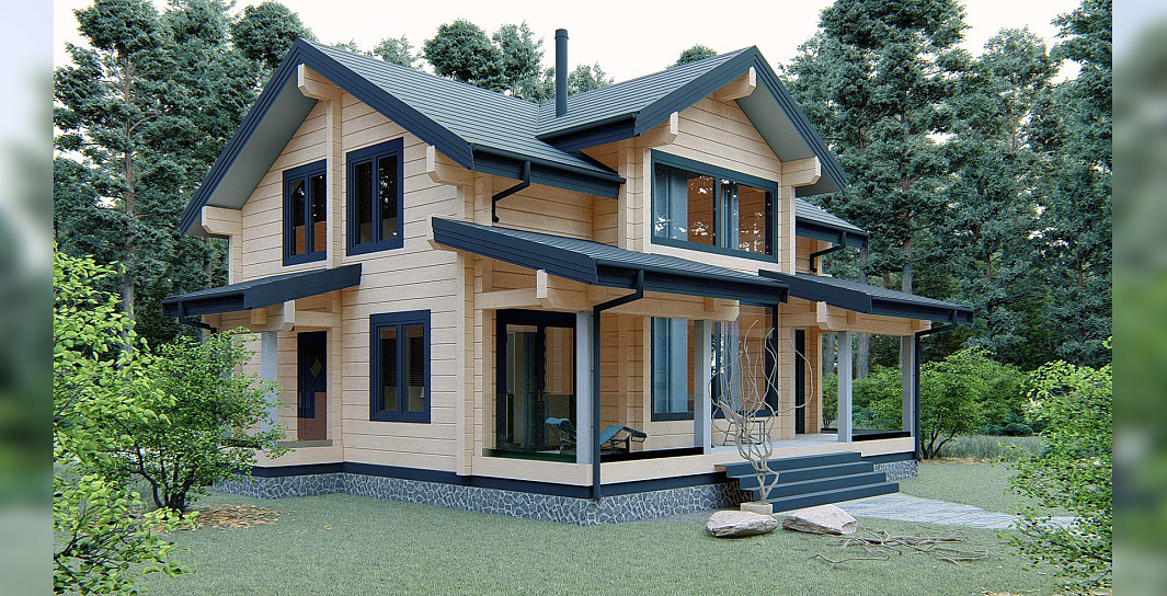 Двухэтажный дом клееного бруса - идеальное сочетание загородного колорита и функциональности для большой семьи.