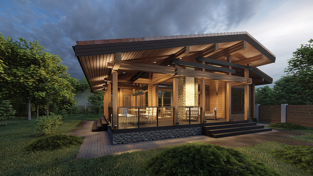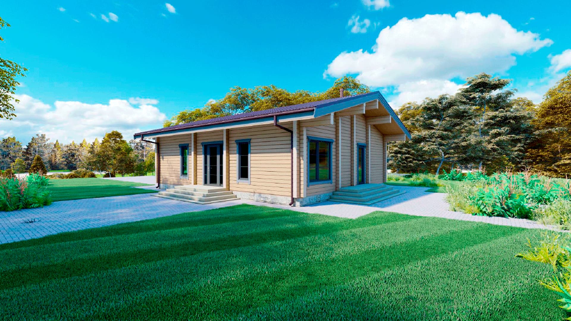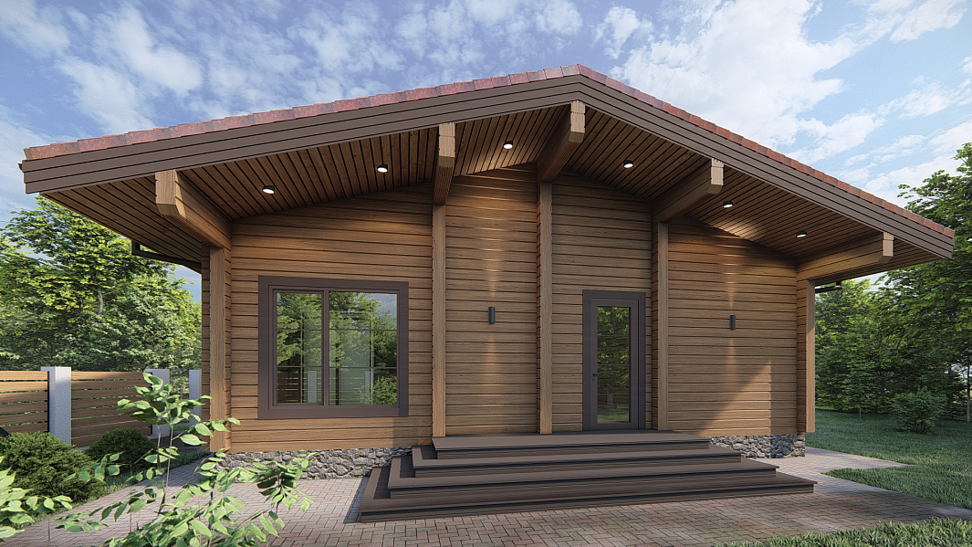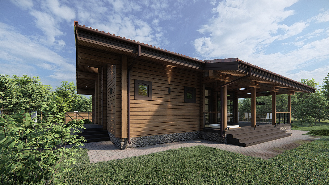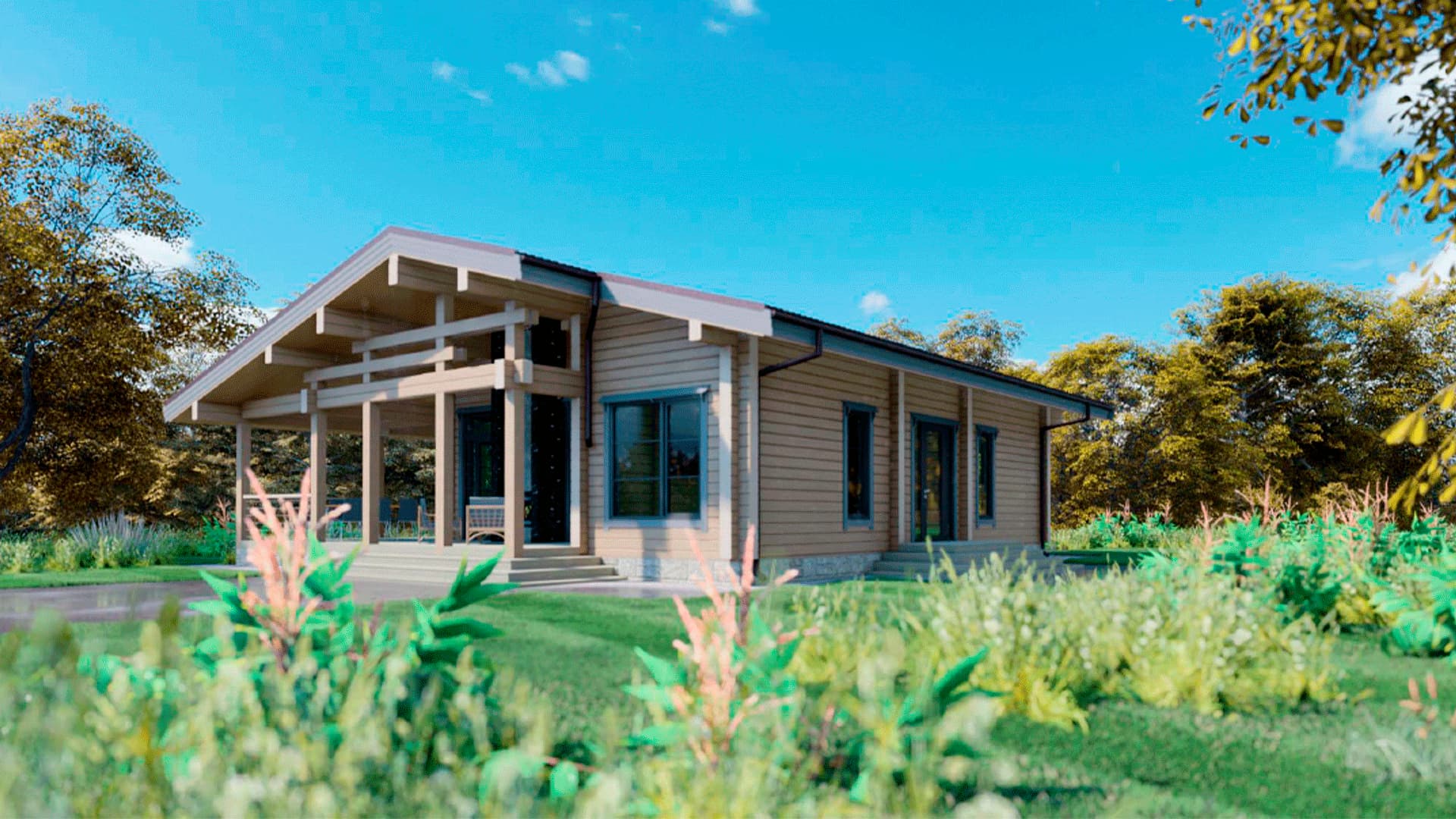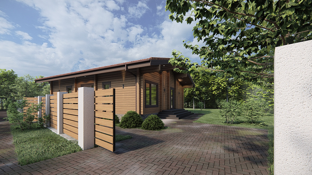 Проект одноэтажного дома П293 разработан для тех, кто ценит особую атмосферу природных материалов и первоклассный комфорт современного дизайна.