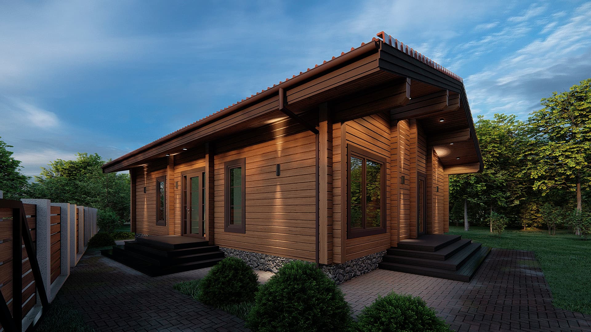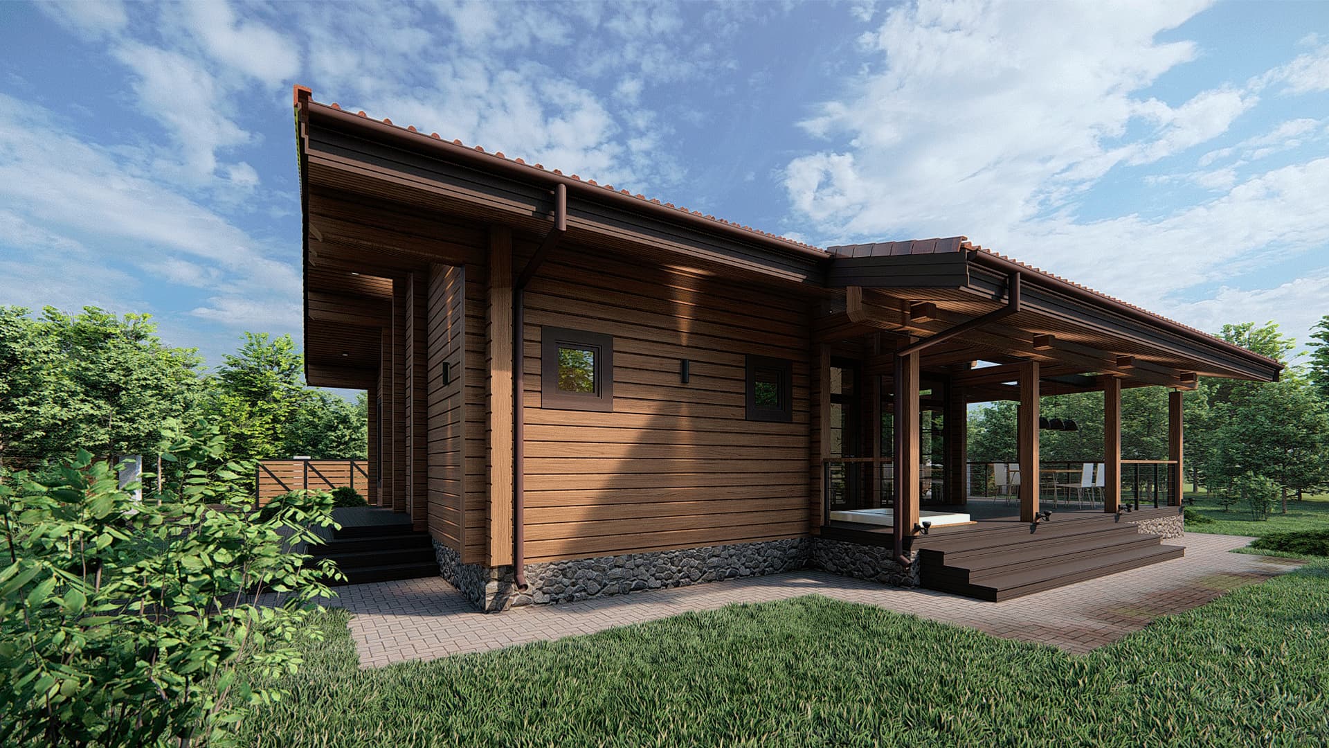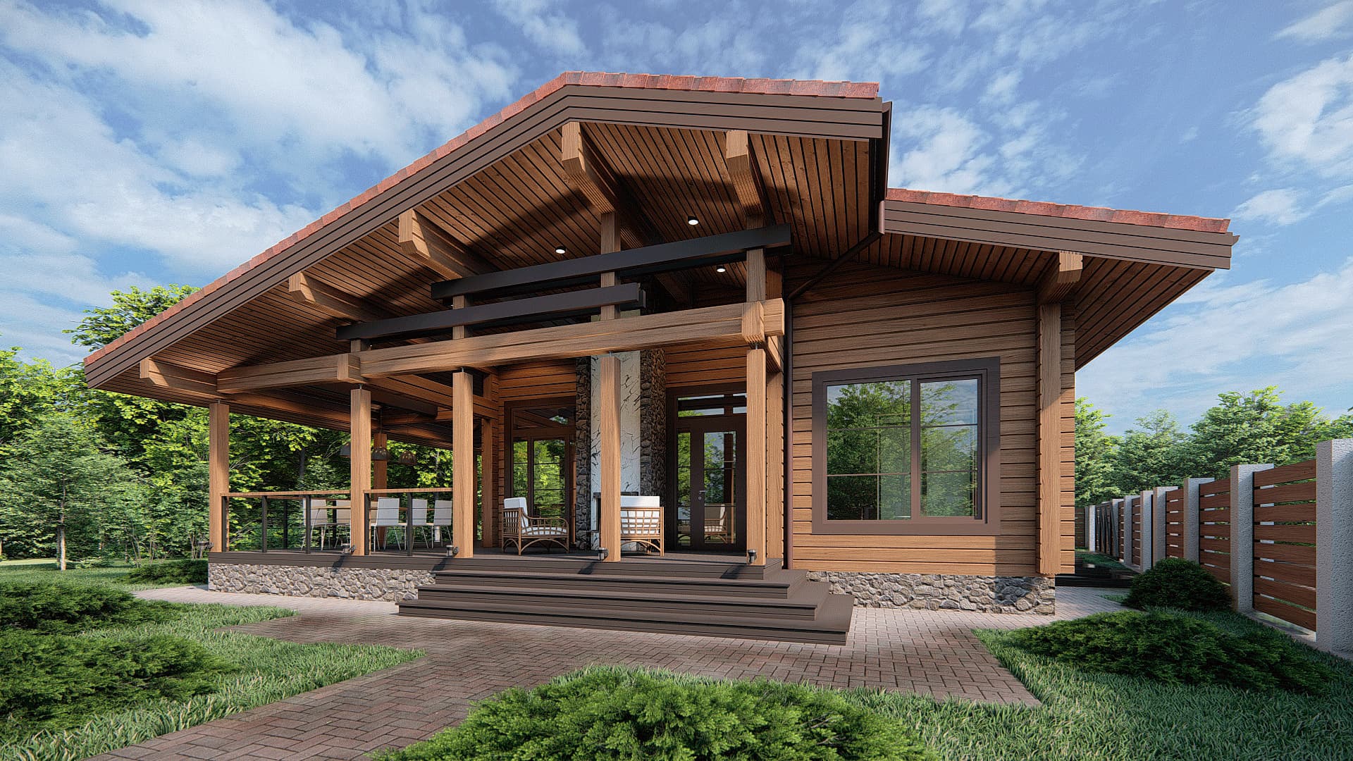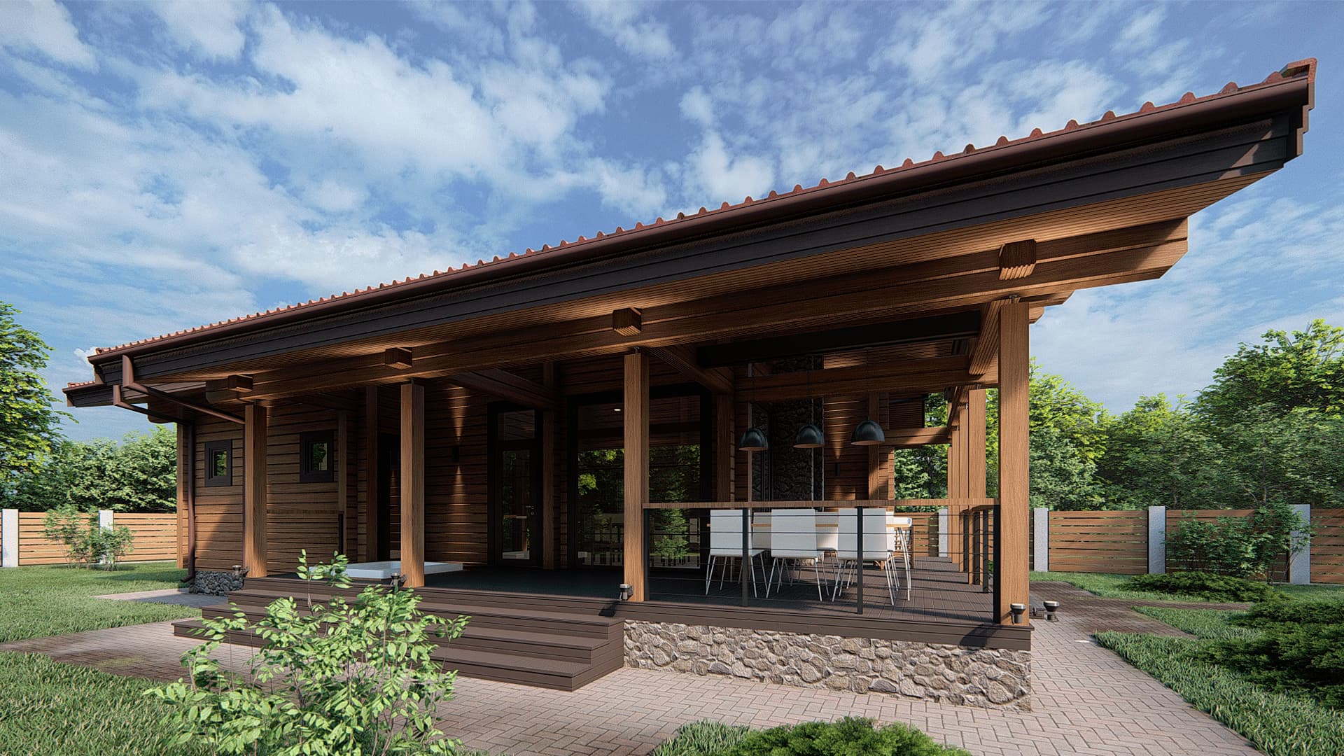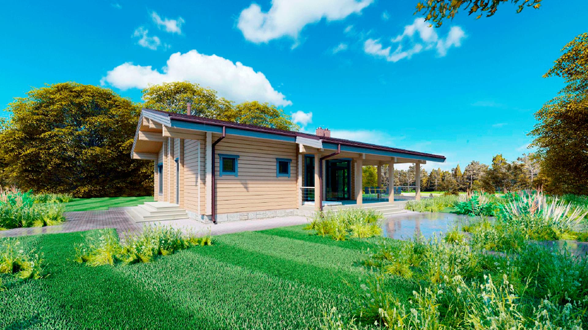 Проект одноэтажного дома П293 разработан для тех, кто ценит особую атмосферу природных материалов и первоклассный комфорт современного дизайна.