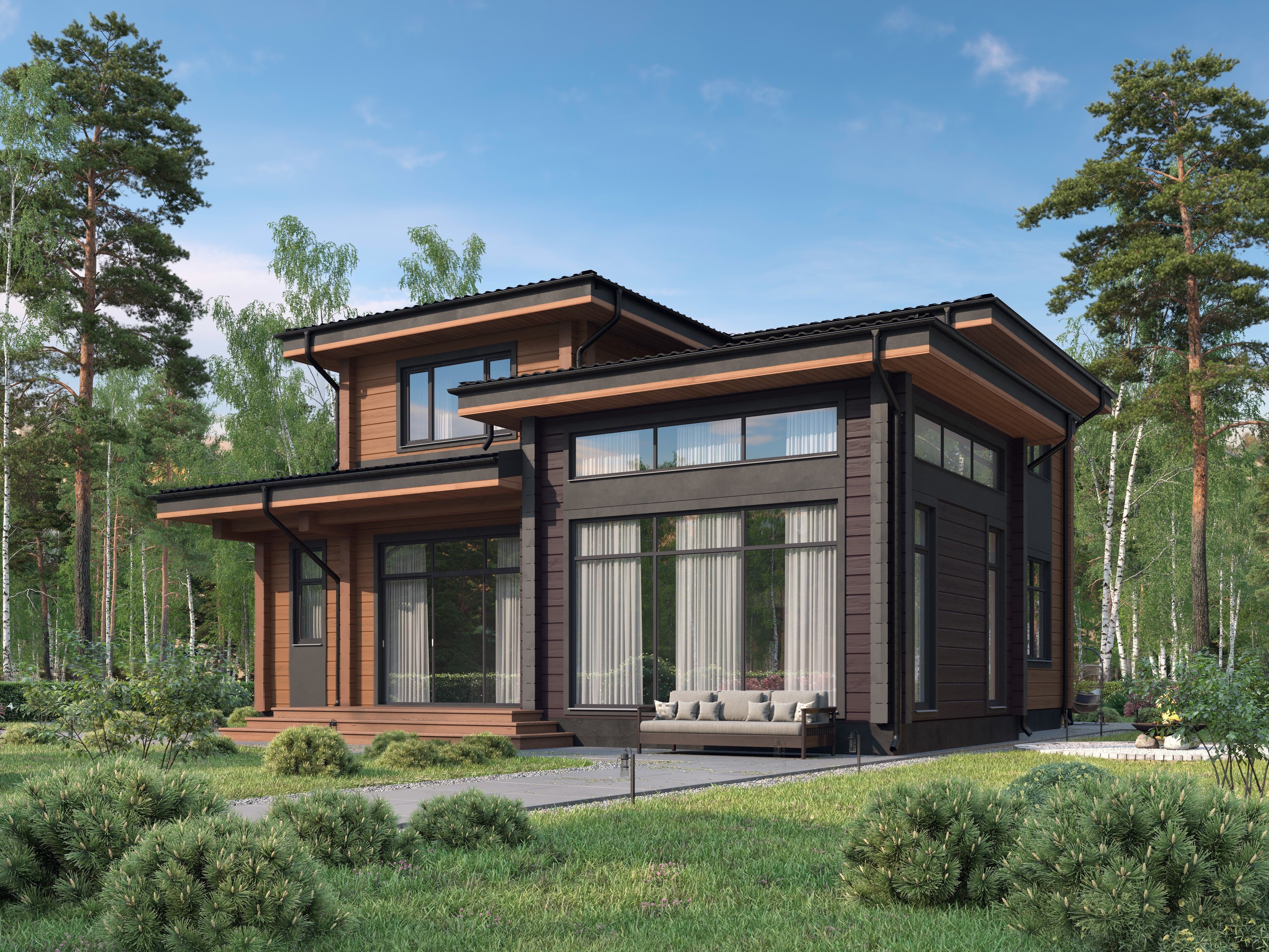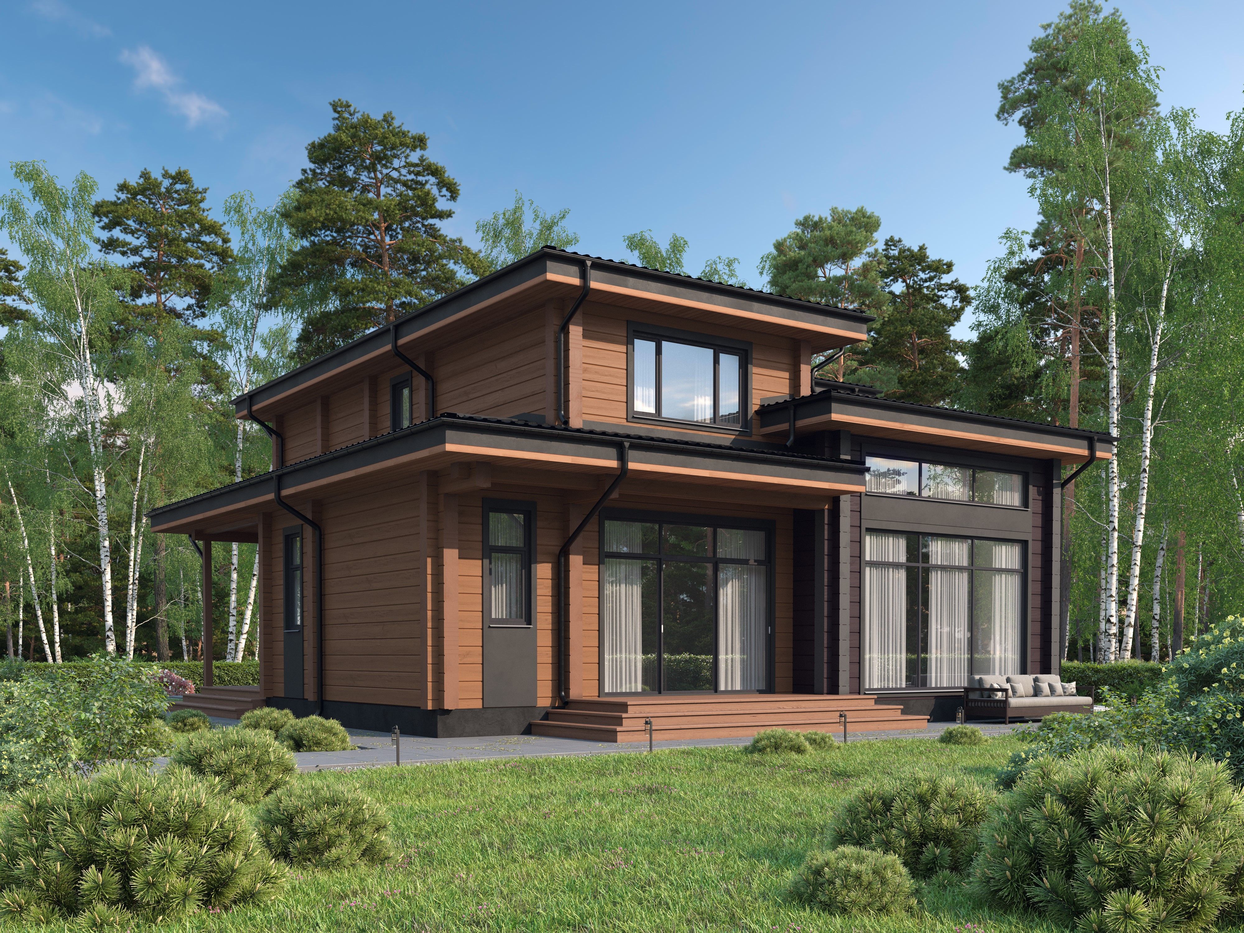 По согласованию с заказчиком состав базового эскизного проекта загородного дома может быть дополнен, например решениями отделки экстерьера (дизайном фасадов), либо какие то материалы (графические, текстовые) могут быть не включены в проект.