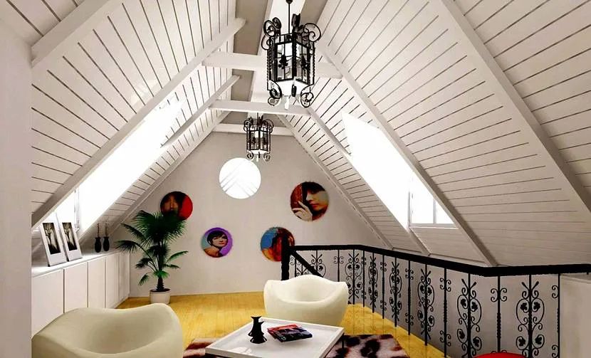 Современное оформление зоны мансарды