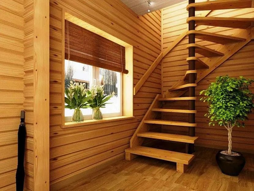 В двухэтажных строениях между ярусами устанавливают лестницу. Классическая конструкция безопасна для детей и пожилых обитателей. Винтовые решения выглядят эффектно, экономят полезные квадраты, но чтобы исключить падение, нужны защитные перила.